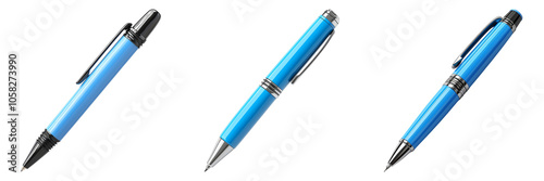 Stylish Blue Pen Collection on Transparent Background for Enhanced Visual Appeal