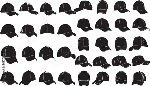 Stylish Cap Flat Black Silhouette Vector Art Bundle