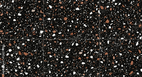 Stylish Dark Terrazzo Pattern With White And Brown Flecks For Modern Design Applications