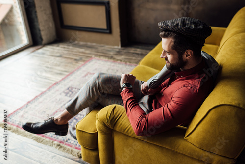 stylish elegant man looking at watch