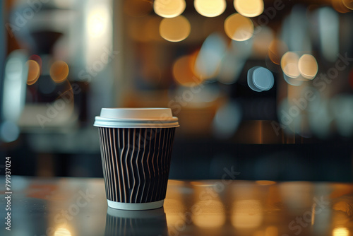 stylish photo of lifestyle associated with coffee takeaway culture, featuring a blurred background that adds depth to the image while keeping the focus on the elegant simplicity of