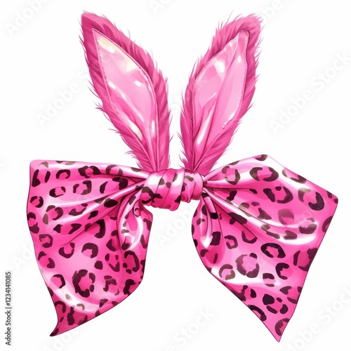 Stylish pink bow with leopard-print bunny ears, perfect for fashion and accessory designs.