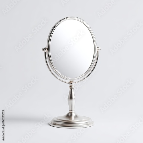 Stylish Silver Makeup Mirror with Elegant Stand and Round Shape