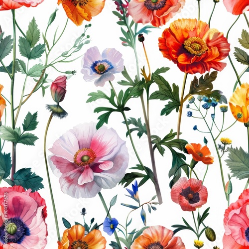 Stylish watercolor floral seamless pattern. Spring textile texture. Ornament illustration.