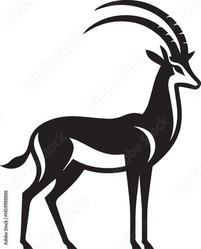Stylized Black and White Gazelle Vector Illustration – Antelope Silhouette Logo Design