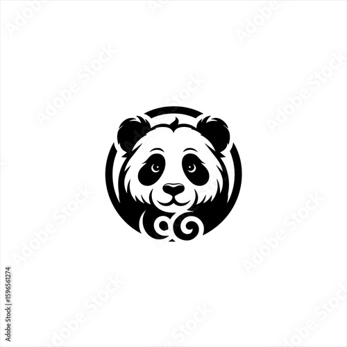 Stylized Black and White Panda Face Logo Design.