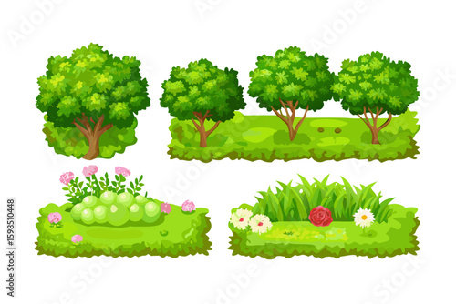 Stylized cartoon greenery and trees for game design