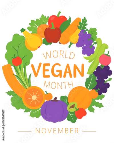 Stylized Illustration Celebrating World Vegan Month with Plant-Based Foods