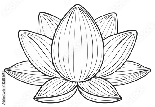 Stylized Lotus Flower Line Art Black and White Drawing