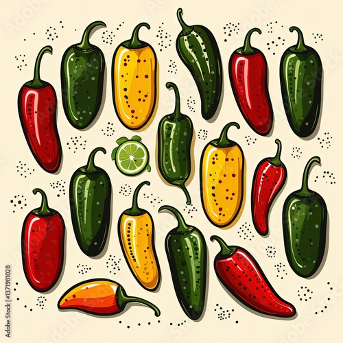 Stylized Modernist Vegetable Composition in Risograph Style
