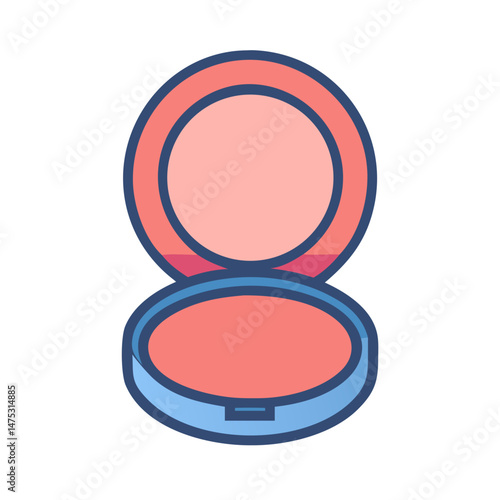 Stylized open blush compact illustration on black background