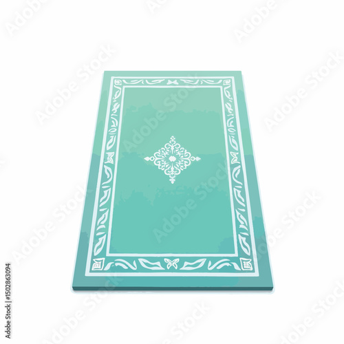 Stylized prayer mat with geometric pattern on white surface, tranquility