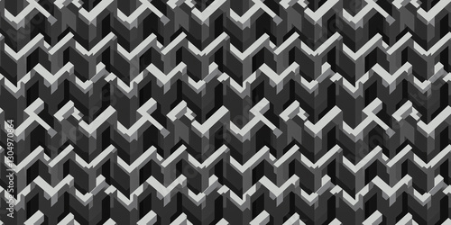 Stylized seamless pattern of interlocking gray shapes creating a textured background. pattern tech