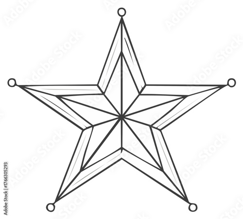 Stylized Sheriff Star Badge Outlined in Black with Five Points Embellished with Circle