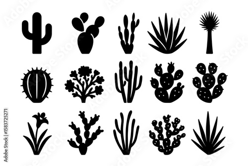 Stylized silhouette cactus collection for modern botanical designs