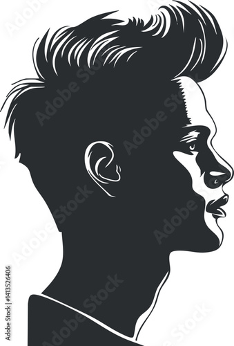 Stylized silhouette of a young man in profile showcasing modern hairstyle and artistic design.