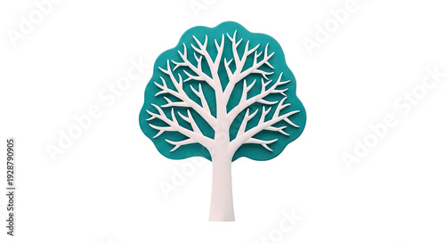 Stylized Tree with White Branches on Teal Background