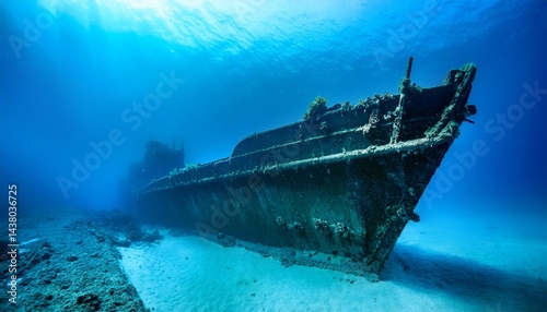 submerged vessel remains underwater exploration of an oceanic shipwreck in a blue aquatic realm