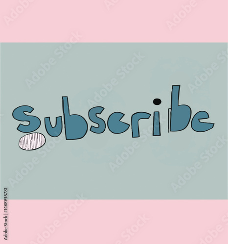Subscribe text button web element graphic design font retro 80s 90s messy lettering the word subscribe in vintage bubble letters hand drawn illustration vector editable isolated