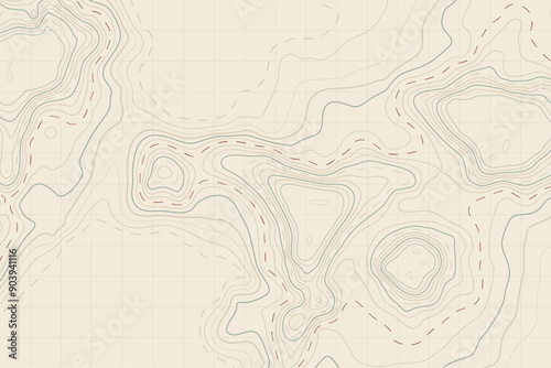 Subtle and elegant topographic lines on a light background, highlighting landforms and terrain details, perfect for cartographic and decor applications