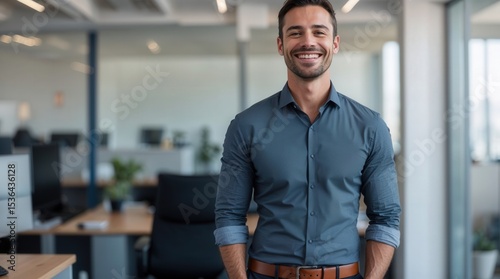 Success businessman smiling in office