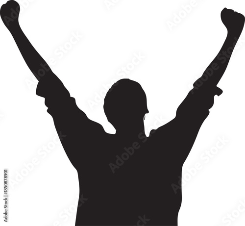 Successful Man Standing on Mountain Peak Victory Silhouette