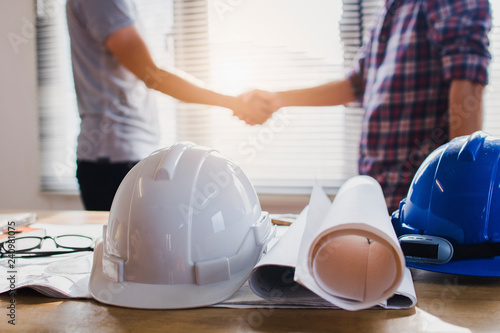 successful Meeting and negotiate concept, architect or engineer shake hands in office