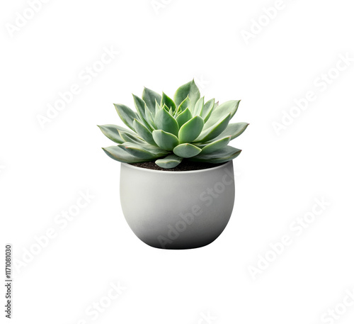 Succulent plant in a gray pot with a minimalist design, providing a fresh and natural element to modern interior decor. Isolated on transparent background, png
