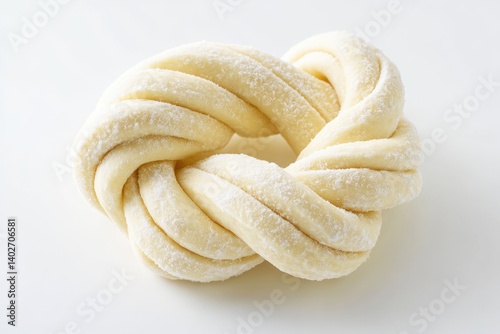 Sugar-dusted dough twisted into a ring shape, ready for baking.