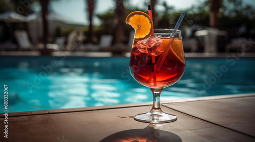 Summer cocktail by the pool new quality universal colorful technology stock image illustration design, generative ai
