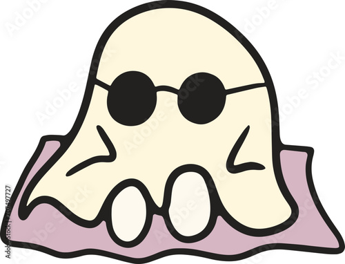 Summer, cute hooded ghost, elements, illustrations