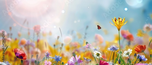 Summer, spring meadow, grass and wildflowers nature abstract background, A picturesque colorful artistic image with a soft focus. Illustration