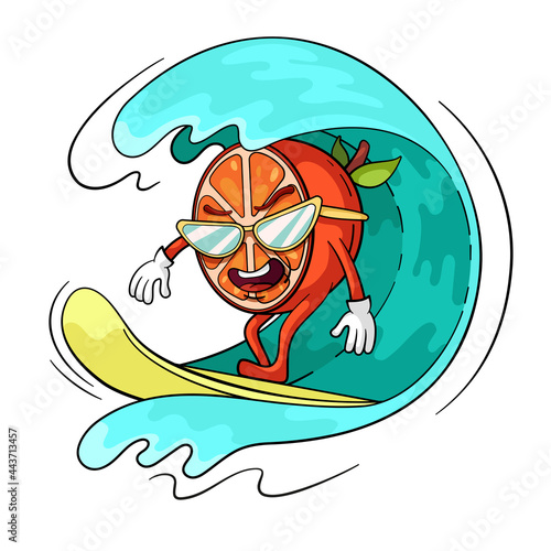 Summer! Surfing orange on surfboard. Vector illustration of a surfer.