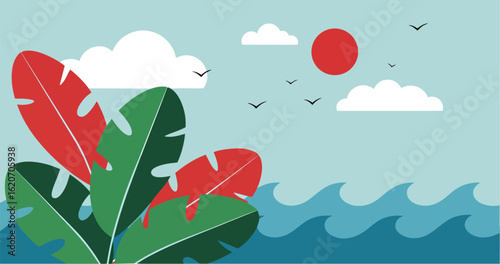 Summer Tropical Nature Landscape Flat Design Illustration Set