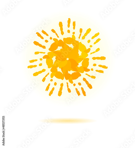 Sun made of handprint. Vector concept for your design.