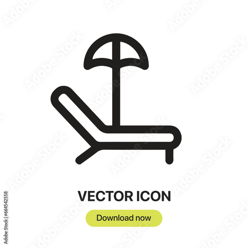 Sunbed icon vector. Linear-style sign for mobile concept and web design. Sunbed symbol illustration. Pixel vector graphics - Vector.