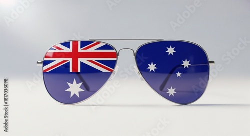 Sunglasses with Australian and British flags on lenses for Australia Day
