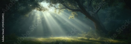 Sunlight Piercing a Misty Forest