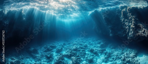 Sunlight Piercing Underwater Coral Reef