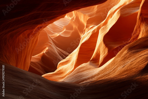 Sunlight Streaming Through Narrow Canyon Opening Illuminates Smooth Curved Rock Walls
