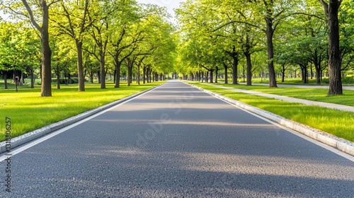 Sunlit Asphalt Road Lined with Lush Green Trees