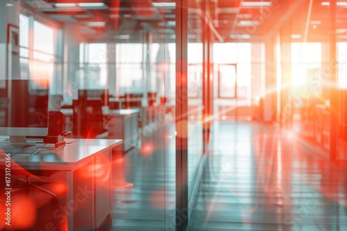 Sunlit office interior with glass walls, highlighting a clean and professional workspace. Useful for promoting business environments and office design concepts. High quality illustration