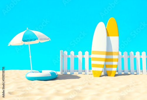 Sunny Beach Day with Surfboards and Umbrella