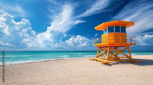 Sunny Beach Lifeguard Stand, Ocean View, Cloudscape