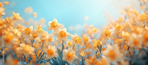 Sunny Daffodil Field, Spring Breeze, Website Banner