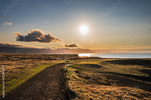 sunrise along the trail from Arnarstapi to Hellnar on the Snaefellnes Peninsula, Iceland