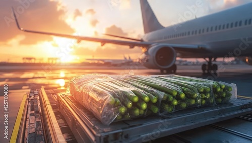 Sunrise Cargo Transport Fresh Asparagus Prepared for International Flight Shipment