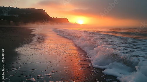Sunrise on a misty beach