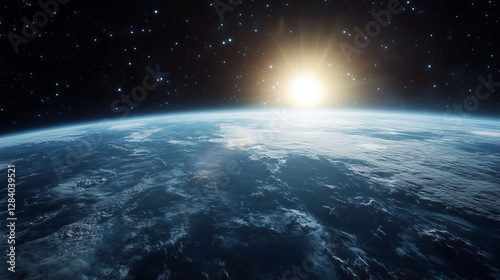 sunrise over Earth globe in space
