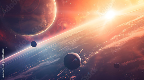 Sunrise over group of planets in space